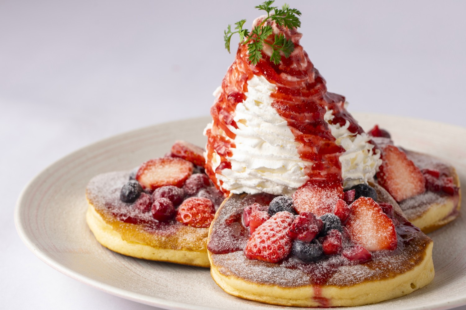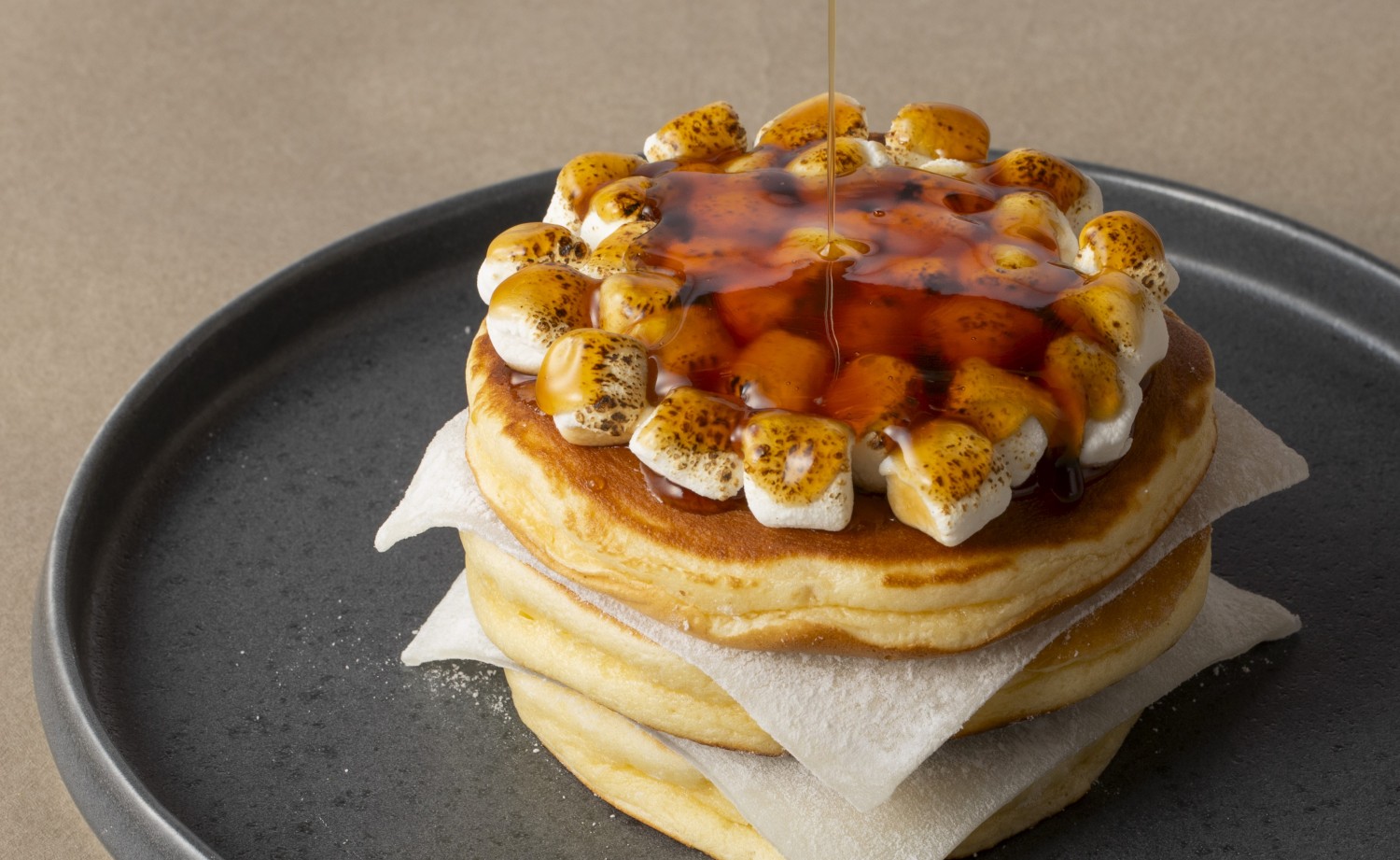 見た目も味も楽しめるこだわりのパンケーキ。ふわふわのパンケーキと薄餅ミルフィーユした「みたらしパンケーキ」のほか、3種のベリーや濃厚チョコレートとキャラメリゼしたバナナを乗せたパンケーキをご用意。また、色とりどりの餡で味わえる「炙りみたらし団子」もおすすめです。