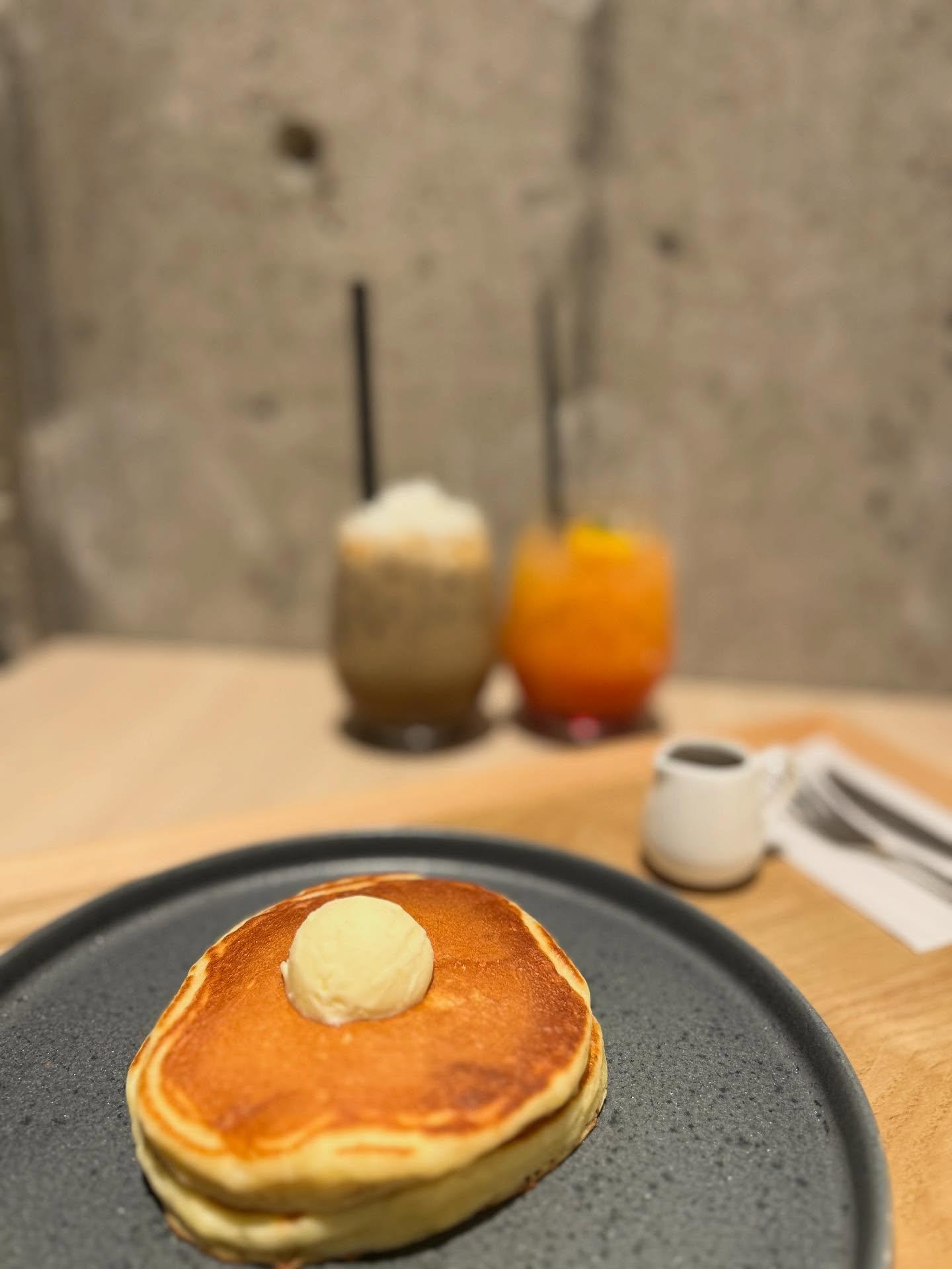 ふわっと香るバターと焼きたてふわもちパンケーキwith KINOCAFEドンリンク🧈🍹