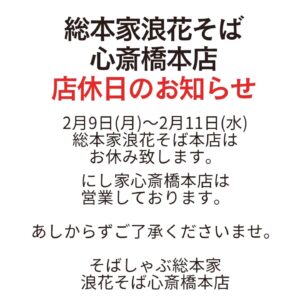 【店休日2/9~2/11】@そばしゃぶ総本家浪花そば心斎橋本店